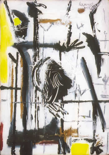 1962, oil on board, 36 x 15in. , signed lower leftFigure with Fan